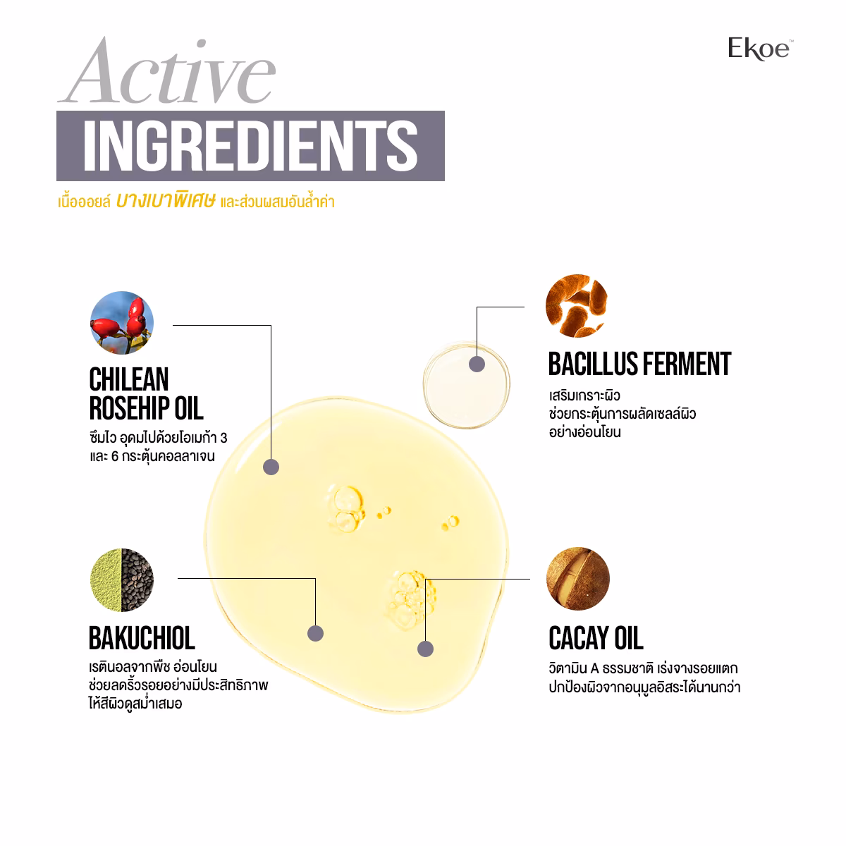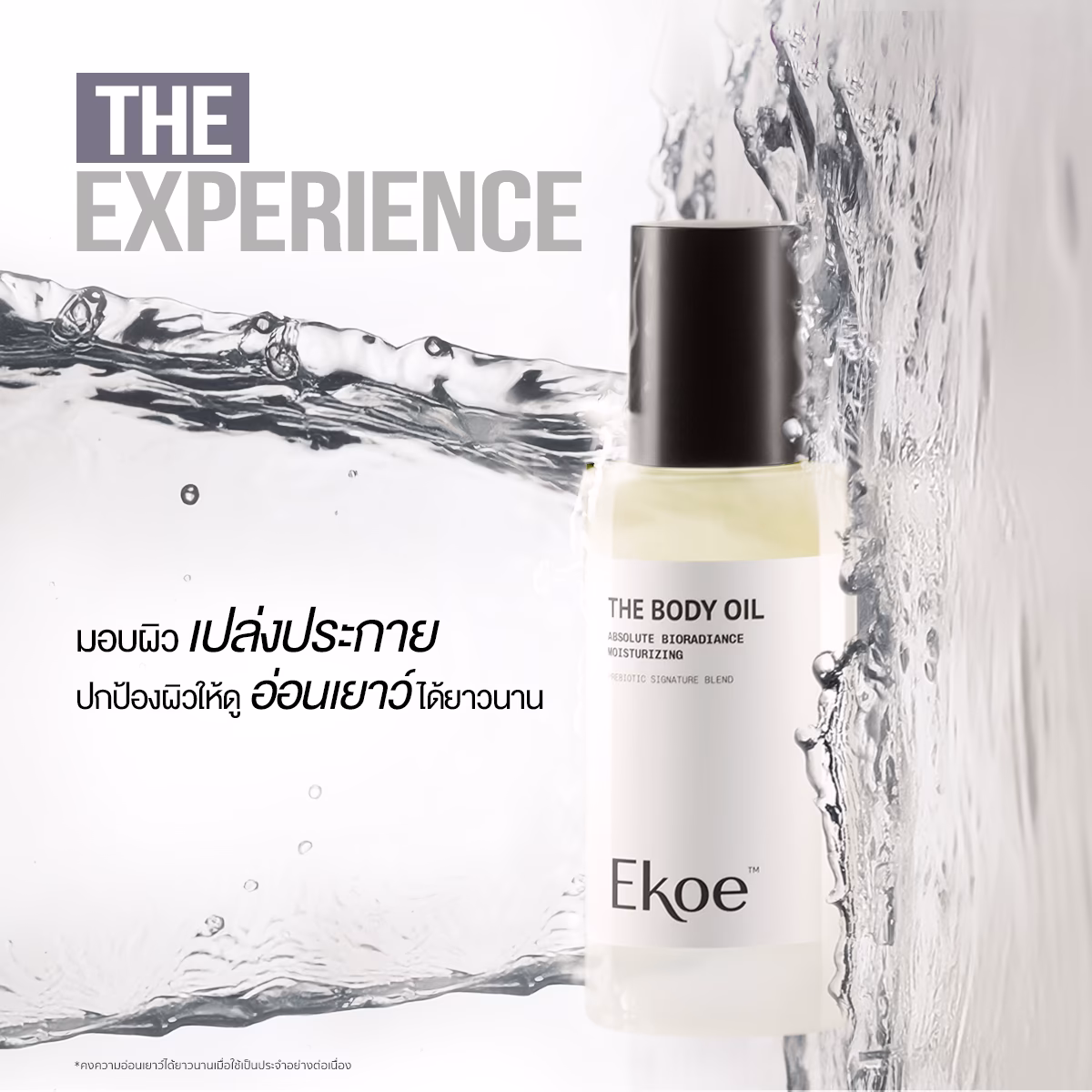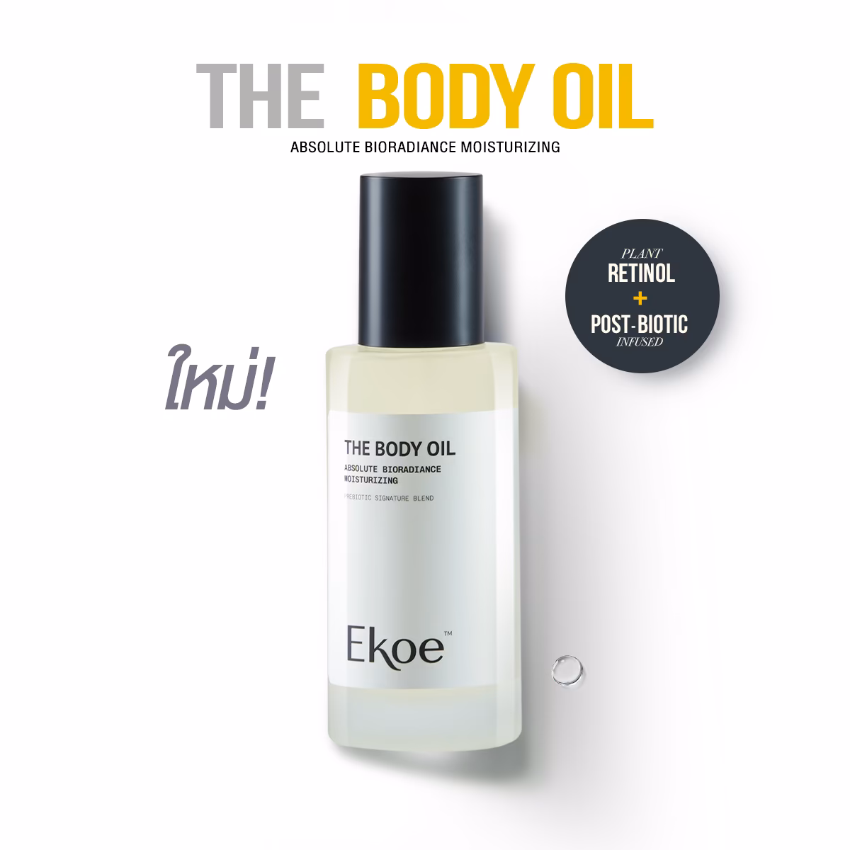 Ekoe ดูแลผิวกายและผิวหน้าด้วยหลักคิดเดียวกัน—เริ่มจากการรับมือความแห้งที่เป็นต้นเหตุ THE BODY OIL ดูแลสมดุลผิวกาย ขณะที่ THE ESSENCE คือขั้นตอนพื้นฐานสำหรับผิวหน้า เพื่อให้ผิวพร้อมรับการบำรุงในทุกวัน