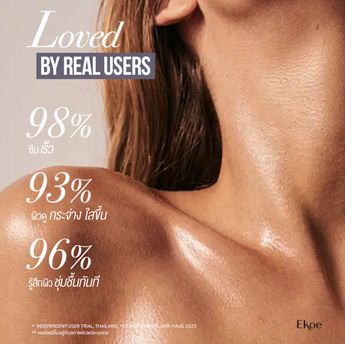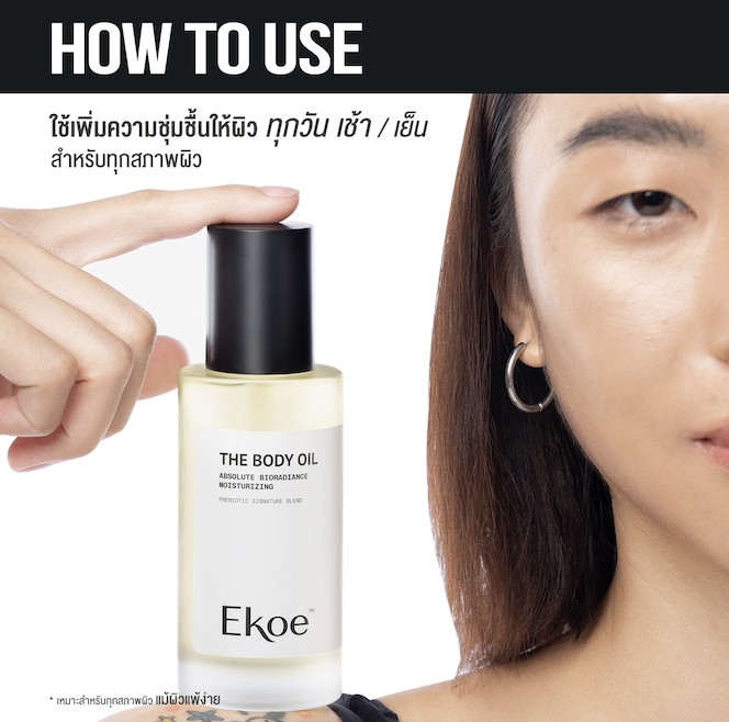 เริ่มรูทีนด้วย THE OIL BAR (link ไปสินค้าได้) เพื่อรับวิตามินอี สควาเลน และกลีเซอรีนธรรมชาติ แล้วปิดล็อกความชุ่มชื้นสมบูรณ์แบบด้วย THE BODY OIL